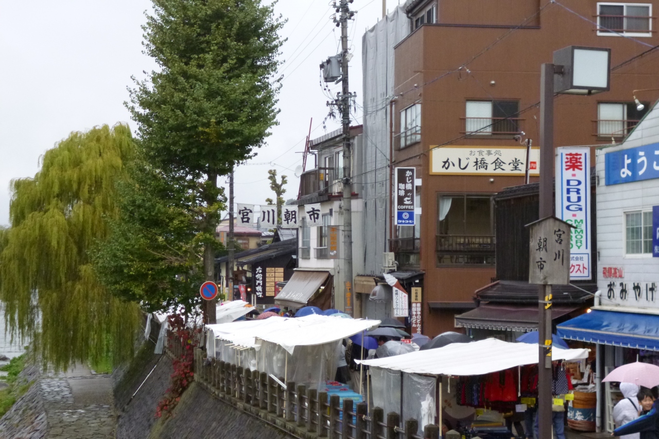 翌朝楽しみにしていた“宮川朝市”ですが、天気予報と違って雨に降られてゆっくりできませんでした。