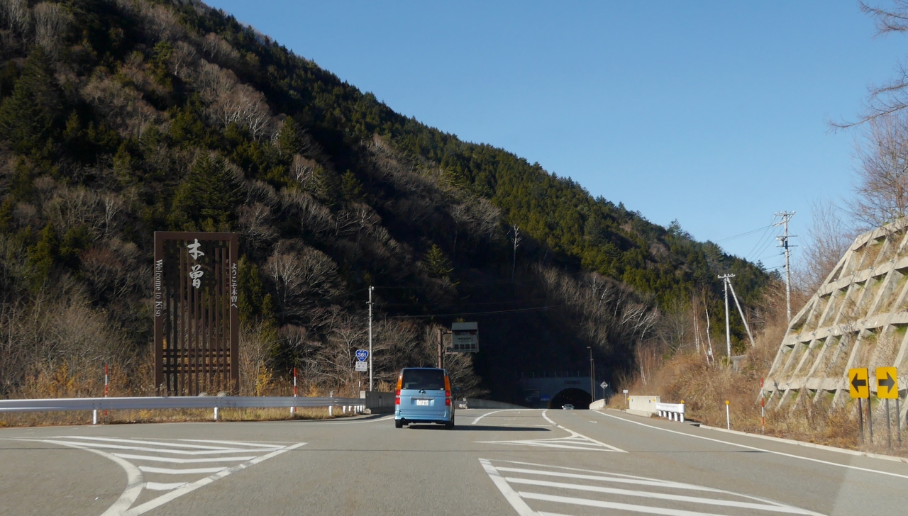 国道361号線,通称権兵衛峠道路.木曽に行くのに,中央高速からのメインルート.伊那ICから降りてむかう.道はよく,有料道路並みの快適さ.権兵衛トンネルは4467m.下り坂のところにループ状の場所があり,急な坂を下るのがよくわかる.ドライブとしても最高の道