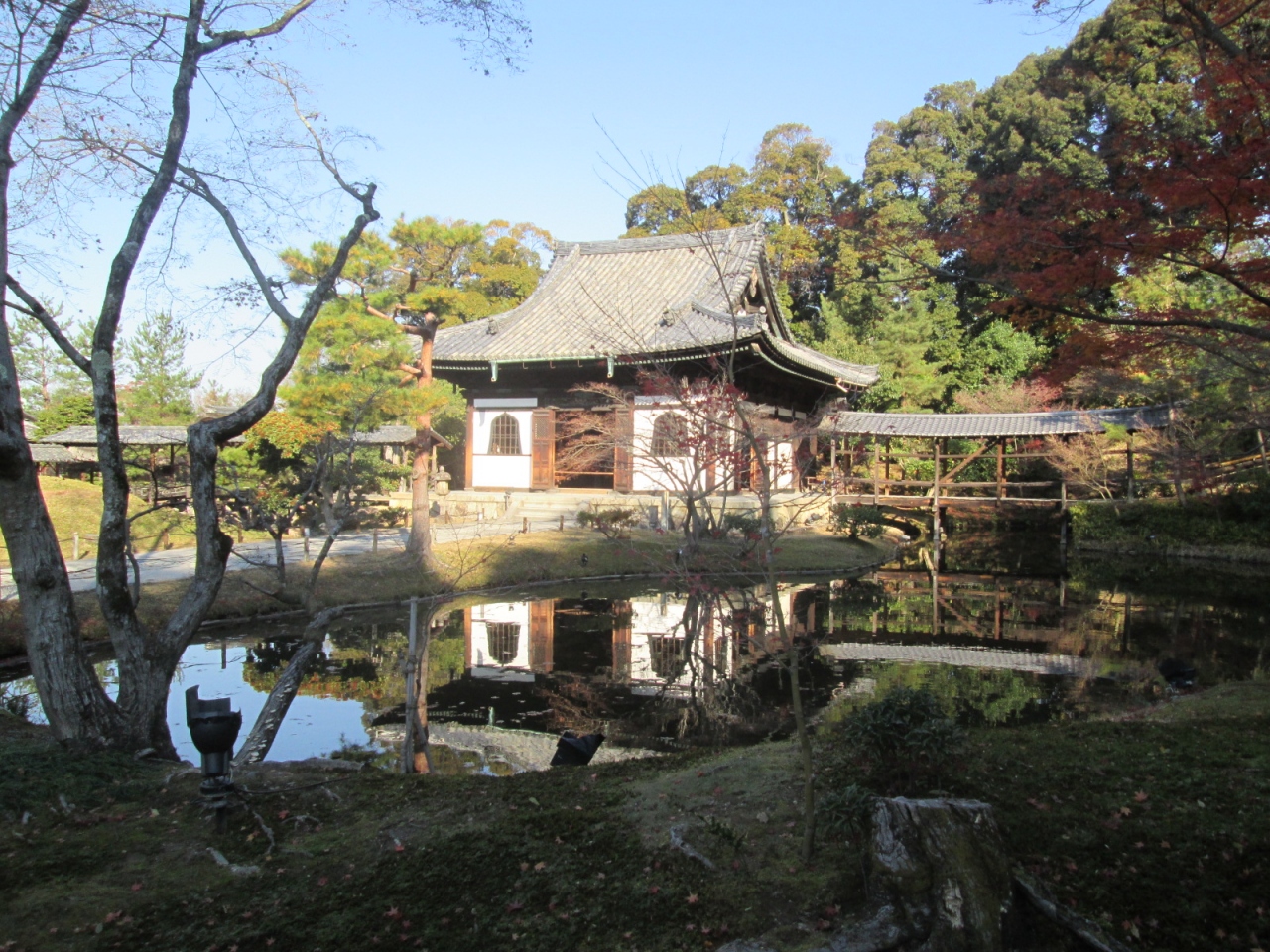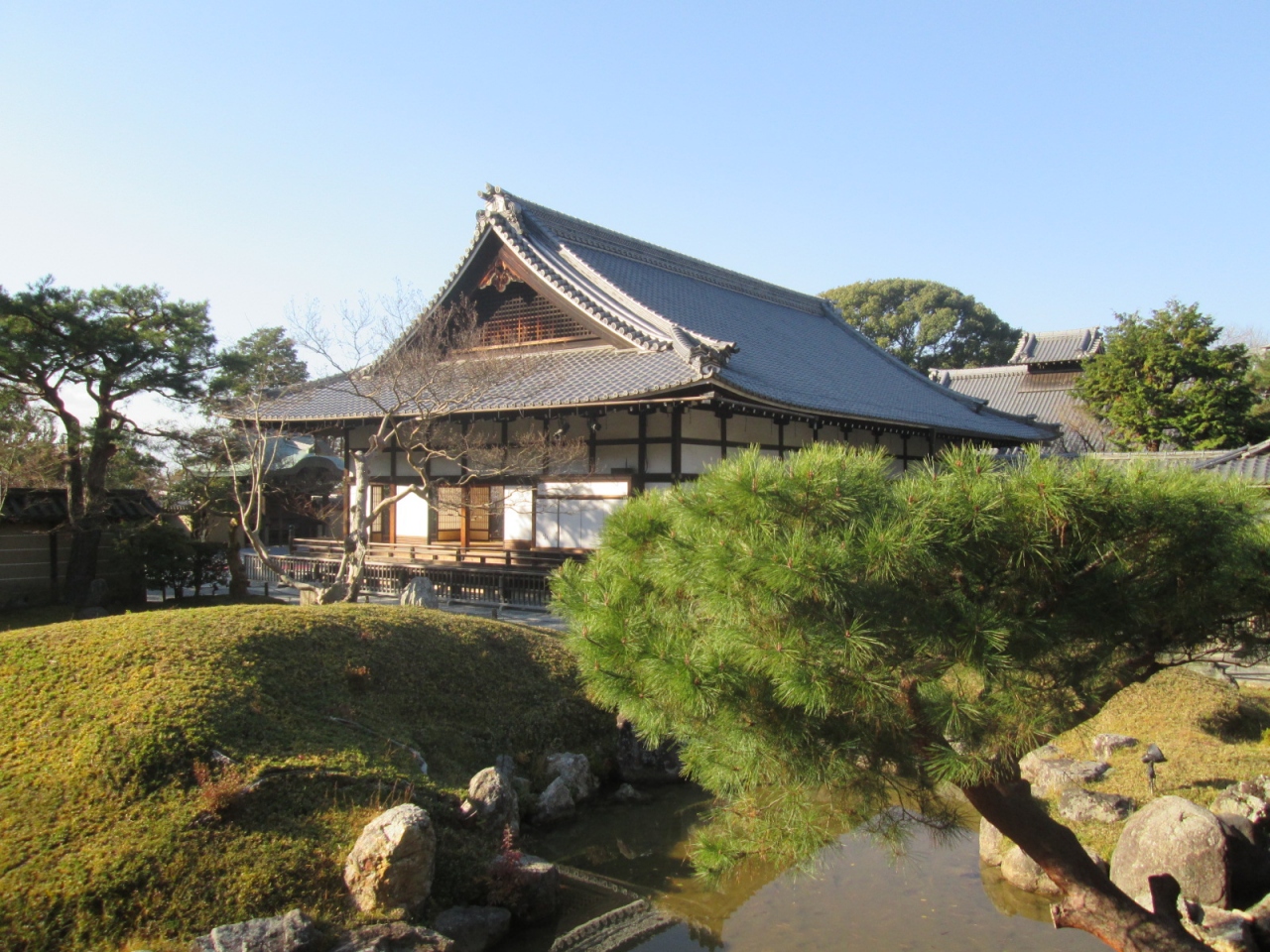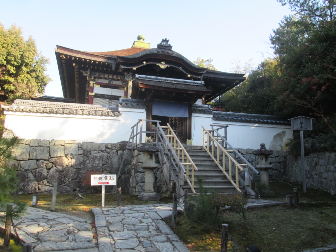 宿泊先からタクシーで向いました。”維新の道”とよばれる道から階段を上ると高台寺駐車場に出ました。「霊山観音」を右手に見ながらまっすぐ進むと「高台寺」に到着します。北政所(ねね)が夫である秀吉公を祀るために建てた寺院だけあって、かつては広大・壮麗な寺院であったとのことです。現在の高台寺駐車場をつきぬけ、「維新の道」を越えた辺りに「表門」が残されているとのことです。拝観券を購入して境内に入ると、確認しただけでも5か所の重要文化財(開山堂、観月台、霊屋、傘亭、時雨亭)、史跡・名勝に指定されている小堀遠州作の庭園など、見応え充分でした。また、それぞれの建物や辻々には作務衣も着た女性がおり、案内や解説をして下さいます。サービス精神も素晴らしい寺院ですね。拝観料には「掌美術館」の入館料も含まれていますが、今回は時間の関係で訪れることができず残念!