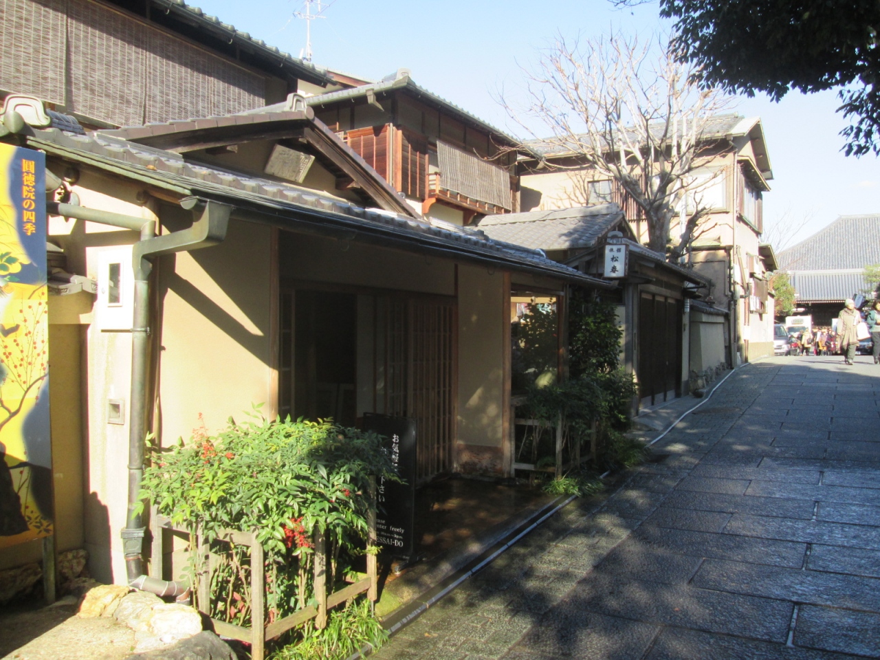 高台寺脇の石畳の道沿いには、北政所(ねね)が建てた「高台寺」、ねねが晩年を過ごした「園徳院」があることから”ねねの道”とよばれています。道の両側には旅館・甘味屋・ギャラリーなどが並んでおり、「雰囲気は悪くはないけれど、さほど…」といった印象です。「八坂神社」辺りから散策しつつ訪れることができます。