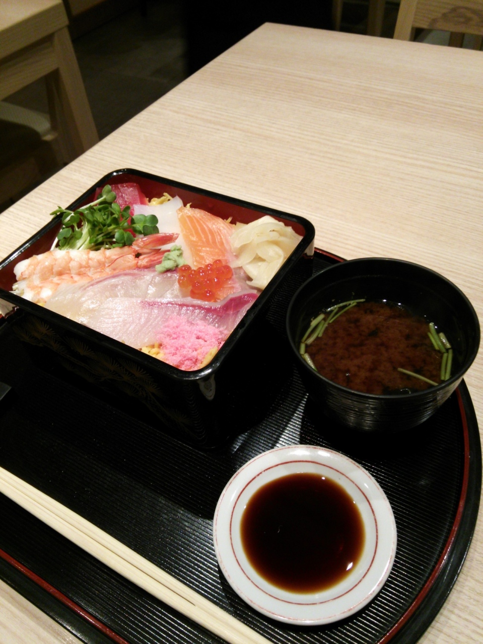 四条駅に直結しているCOCONカラスマの地下に飲食街がありますが、その一画です。意外と広く、白木を基調にした店内はあかるくて、落ち着けます。ランチだったので、海鮮丼を注文しました。赤だし付きで1200円です。ネタもすし飯も美味しかったし、接客も良いので、また行くと思います。
