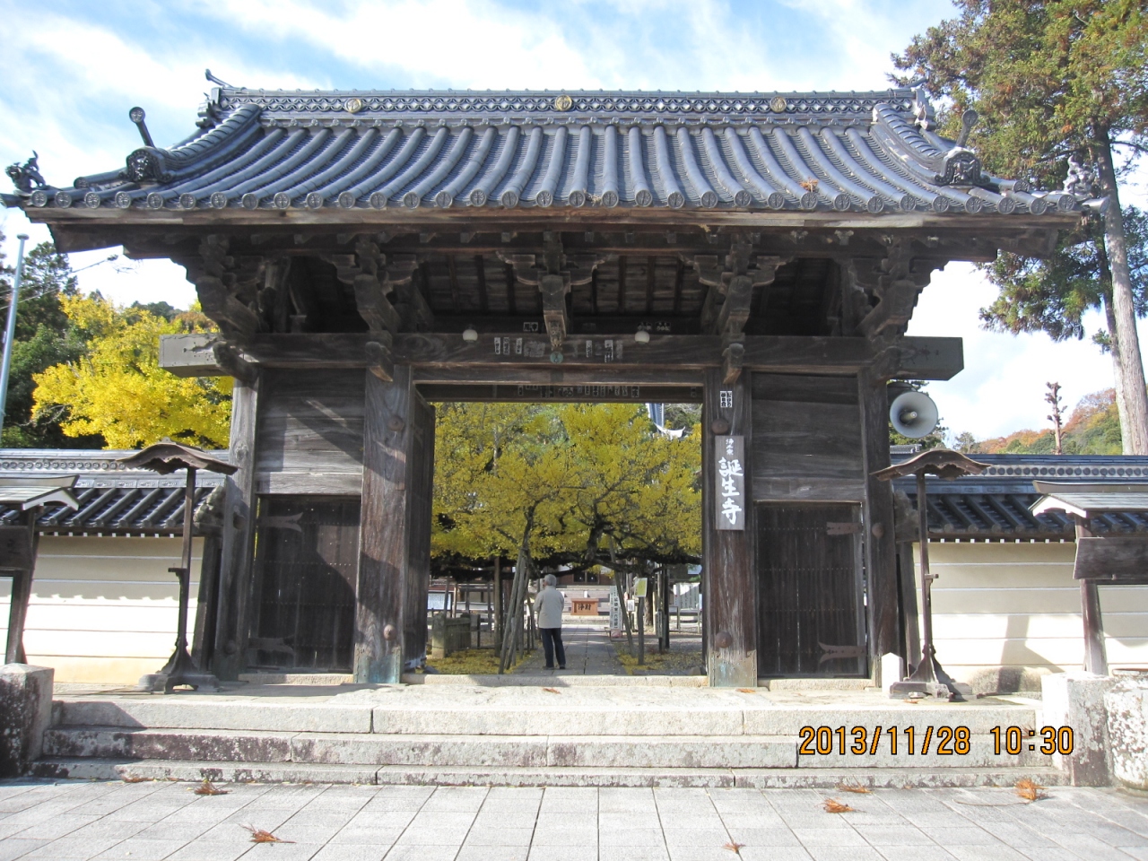 法然上人の産湯の井戸や母君 旅立ちの法然様の像があり思いをはせる事ができました。誕生寺七不思議も興味を引かれました。逆木の公孫樹(15歳の旅立ちの時挿された)は 今年は 夏暑すぎて色付きが悪かったようです。山門から目に入る公孫樹の大木は 堂々と天に向かっていました。