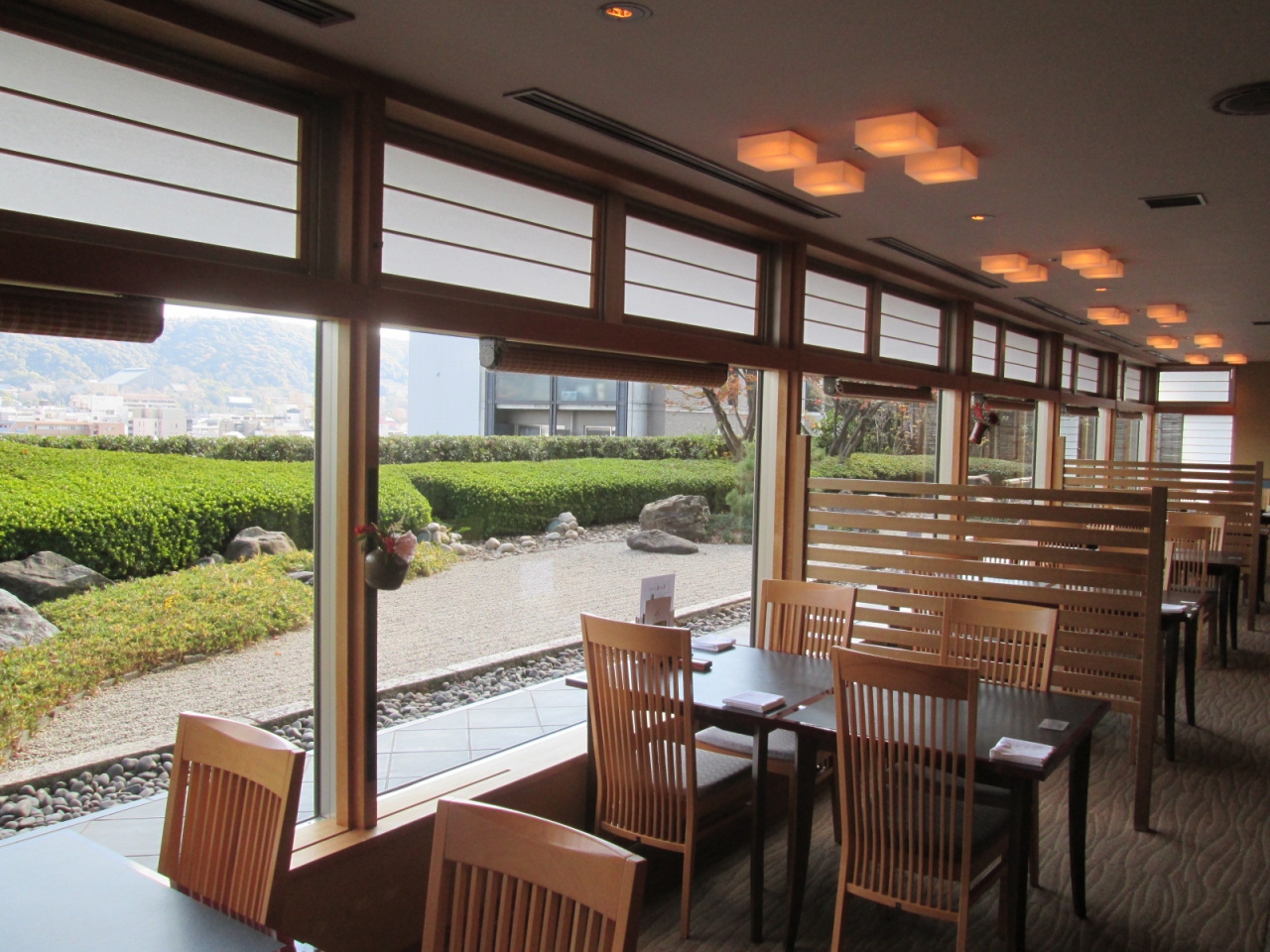 - 石畳風の入り口から清潔感溢れる店内に入ると、窓の外には庭園が設えてあり、その向こうには東山という風景も楽しめますし、もちろ客層も良かったです