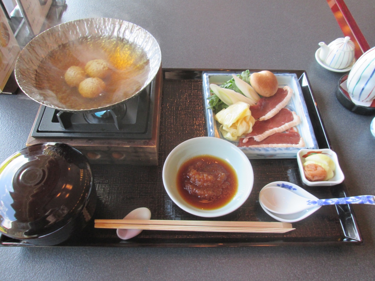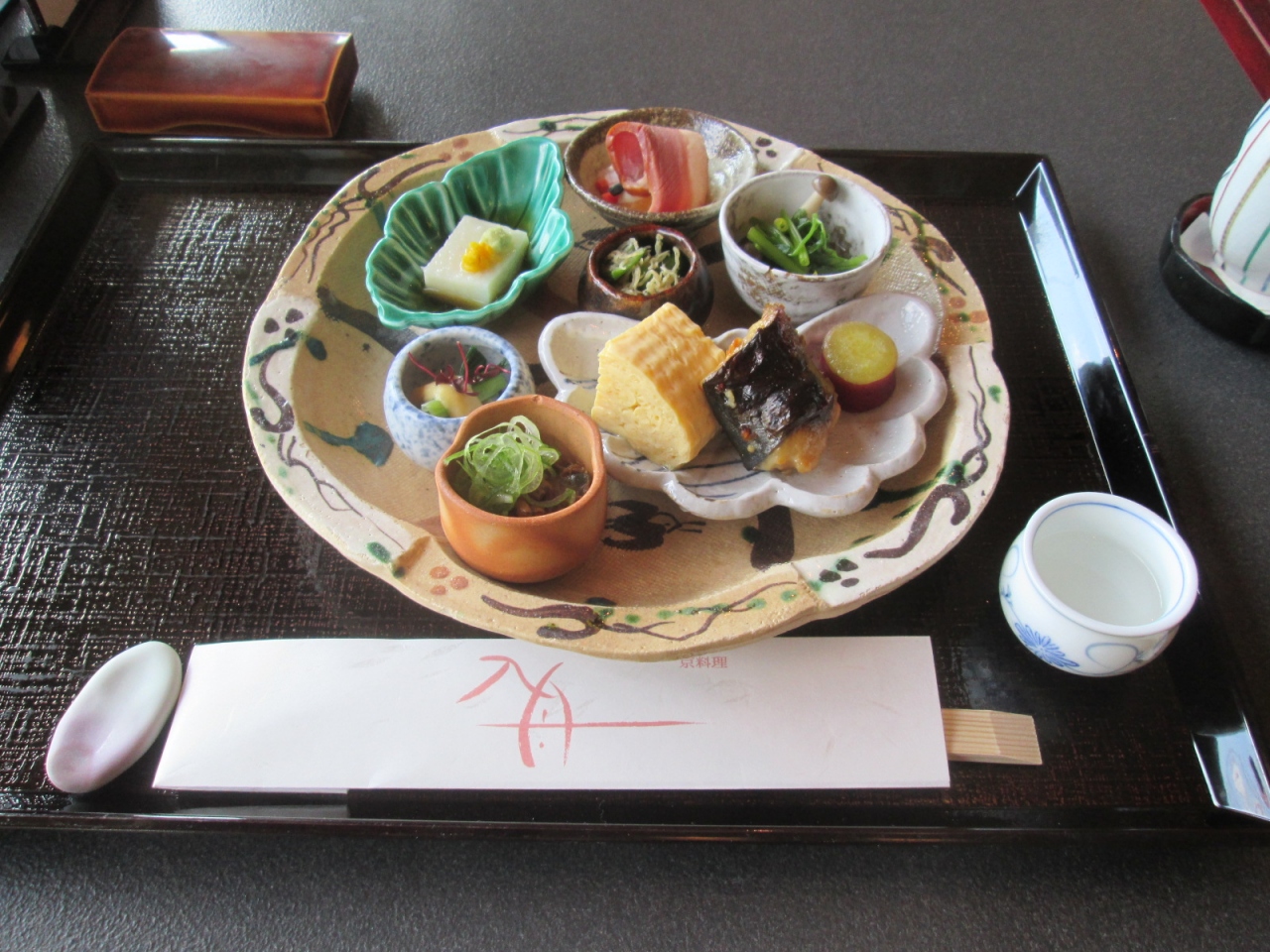 「京都ホテルオークラ」の6階にある京料理店「入舟」です。今回もランチタイムに一人でうかがいました。石畳風に設えてある玄関を入ると、和服姿のお姉さん方からいただく丁寧な挨拶は気分が良いですね。4人掛けのテーブルに通され、接客係のお姉さんの言う通りに脱いだジャンパーを隣の椅子に置くと、上掛けを掛けて下さいます…さすがの気配りですね。窓の外には日本庭園、遠く向こうには東山の山々も見ることができます。さて注文したのは前回と同様の”ごちそう膳”4042円(税・サービス料込)。3つの料理からメインを選べるのですが、前回が”すっぽん鍋”でしたので、今回は”鴨鍋”にしました。料理も相変わらず美味しいですし、給仕もしっかりしており、客層も落ち着いているのでストレスを感じることがありません。気持ち良さ満点のお店です。