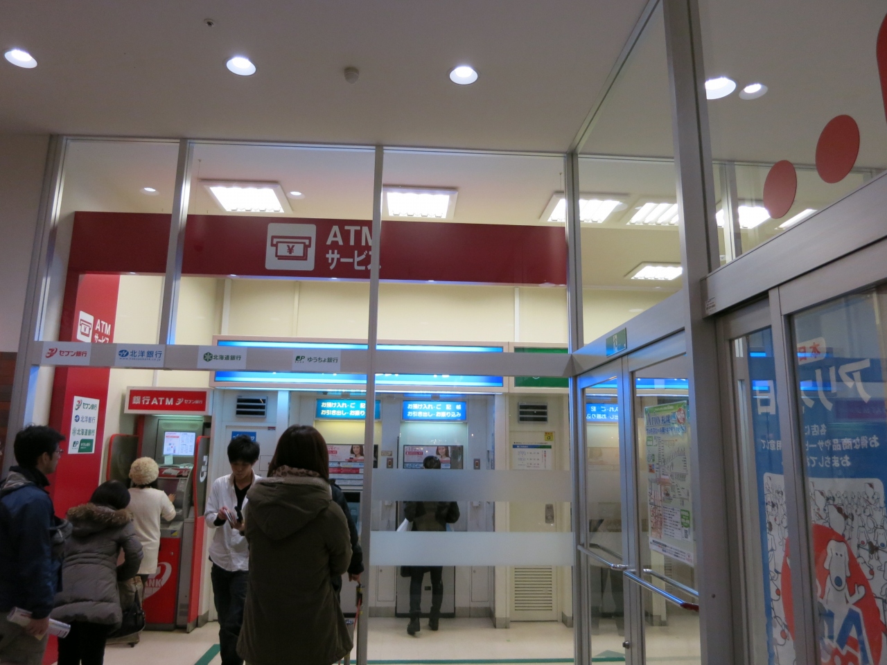 1階は食料品売り場に飲食店などが入っています。そば屋の花膳亭の窓側の席などは目の前のサッポロビール園のライトアップされた赤レンガと、エントツ広場を眺めながらの食事が良いです。ただ、隣の餃子の王将の方が混んでいました。そして、苗穂駅側出入り口付近には100円ショップがあります。ここではクレジットカードが使えて便利でした。また、ATM出入り口側には銀行ATM(道銀、北洋、ゆうちょ、セブンの4行)があり、休日は長い列ができます。更に、訪れた時は、子ども達が乗り込めるファンファントレイン(1回¥300円。土日祝の11時~17時。)が、ゆっくり館内を走り回っていました。しかし、遅い時間だったせいか、人はあまり乗っていませんでした。ただ、乗っていた子どもは、それでもはしゃいでいました。