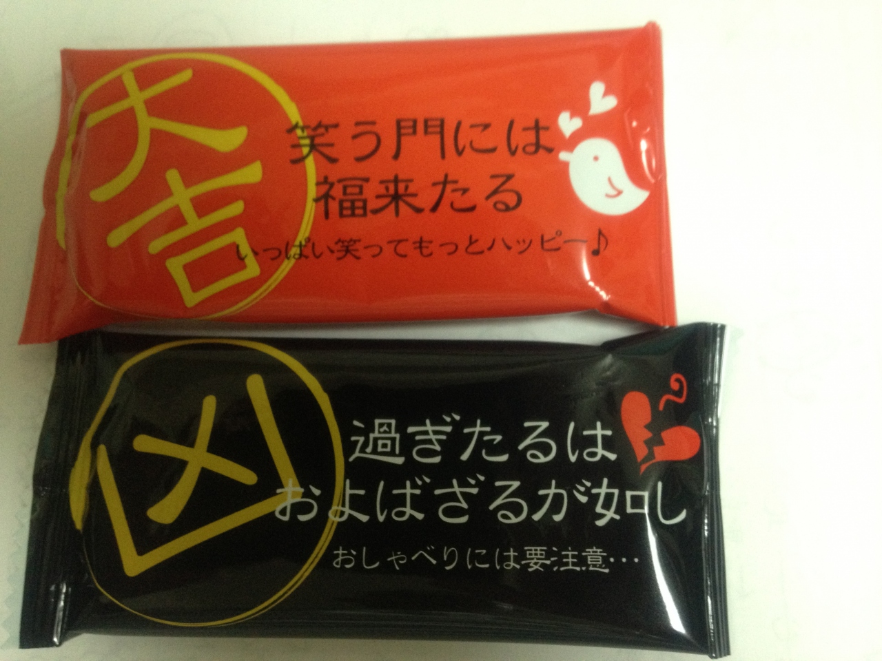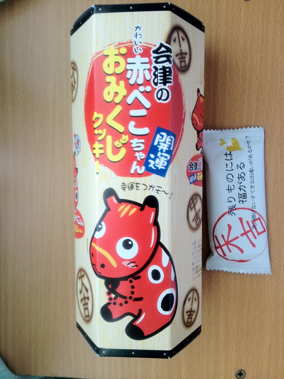 赤べこのおみくじクッキーを買いました。発想がユニークですね。