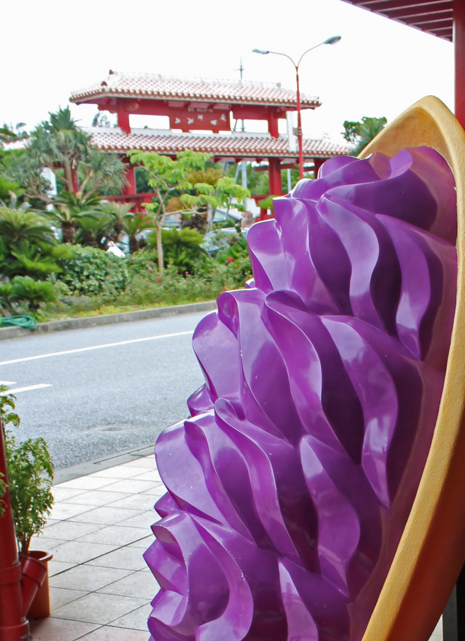 沖縄本島の北部を回る観光バスに乗っていたら連れてこられました。紅芋タルトで有名なお店のようで、他にもいろいろなお菓子があり、ツアーのお客さんなどもみんな結構たくさん買っていました。
