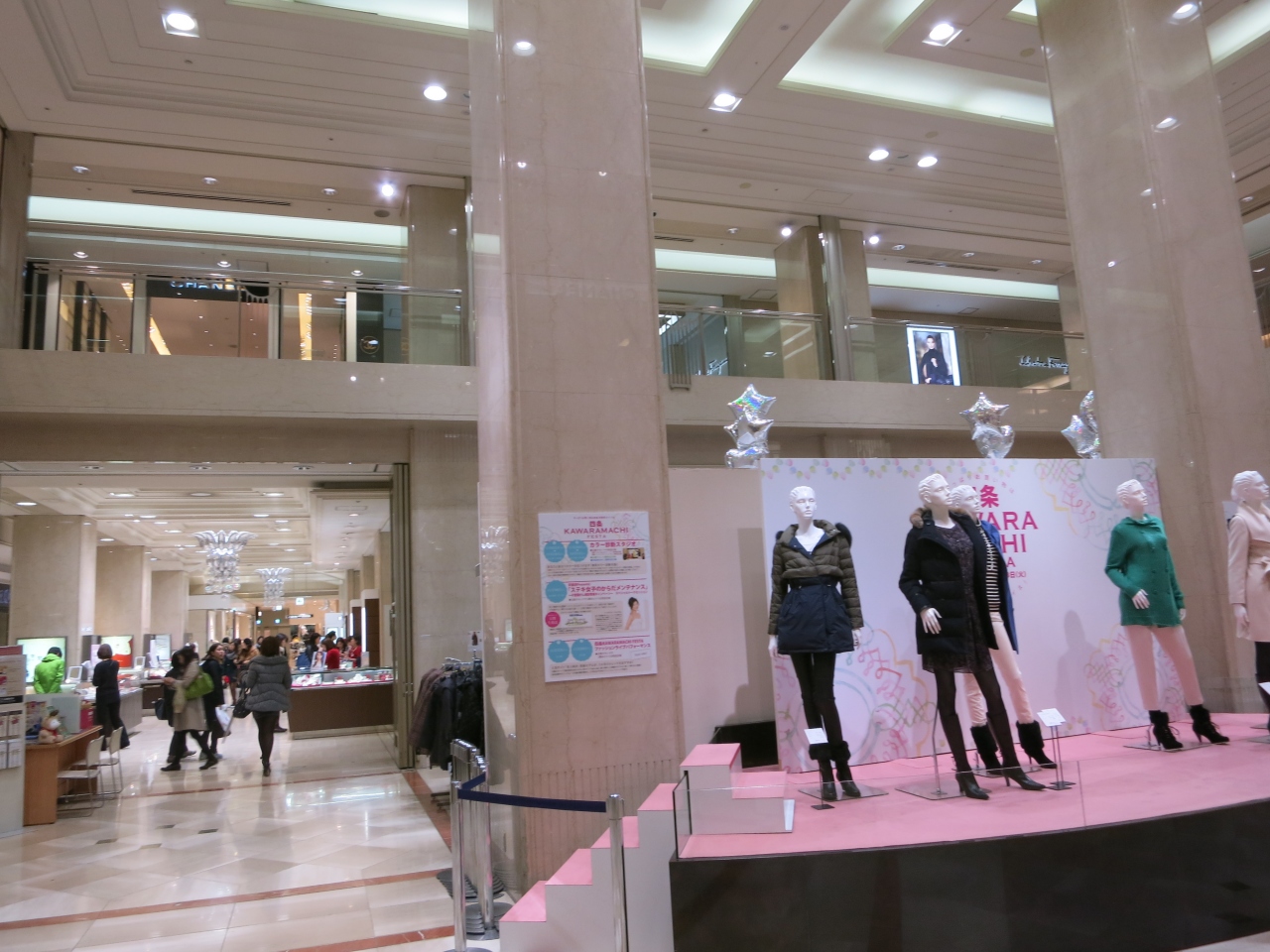 四条河原町の交差点にある老舗に百貨店店舗です。祇園祭の山鉾巡行の辻回しのときは身動きが取れないほど、人が集中するところです。