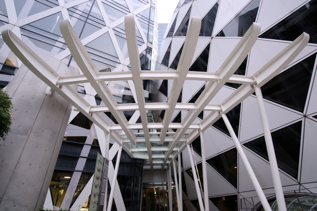 ビル群の中でも北側に位置し、新宿でもひときわ目を引くビルです。直線で構成されることの多い新宿の超高層ビル群において、曲線が多用されているこのビルの形と意匠は、非常に独特の見た目をしているのです。