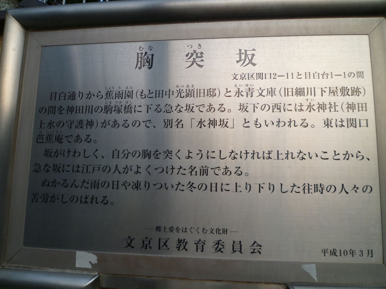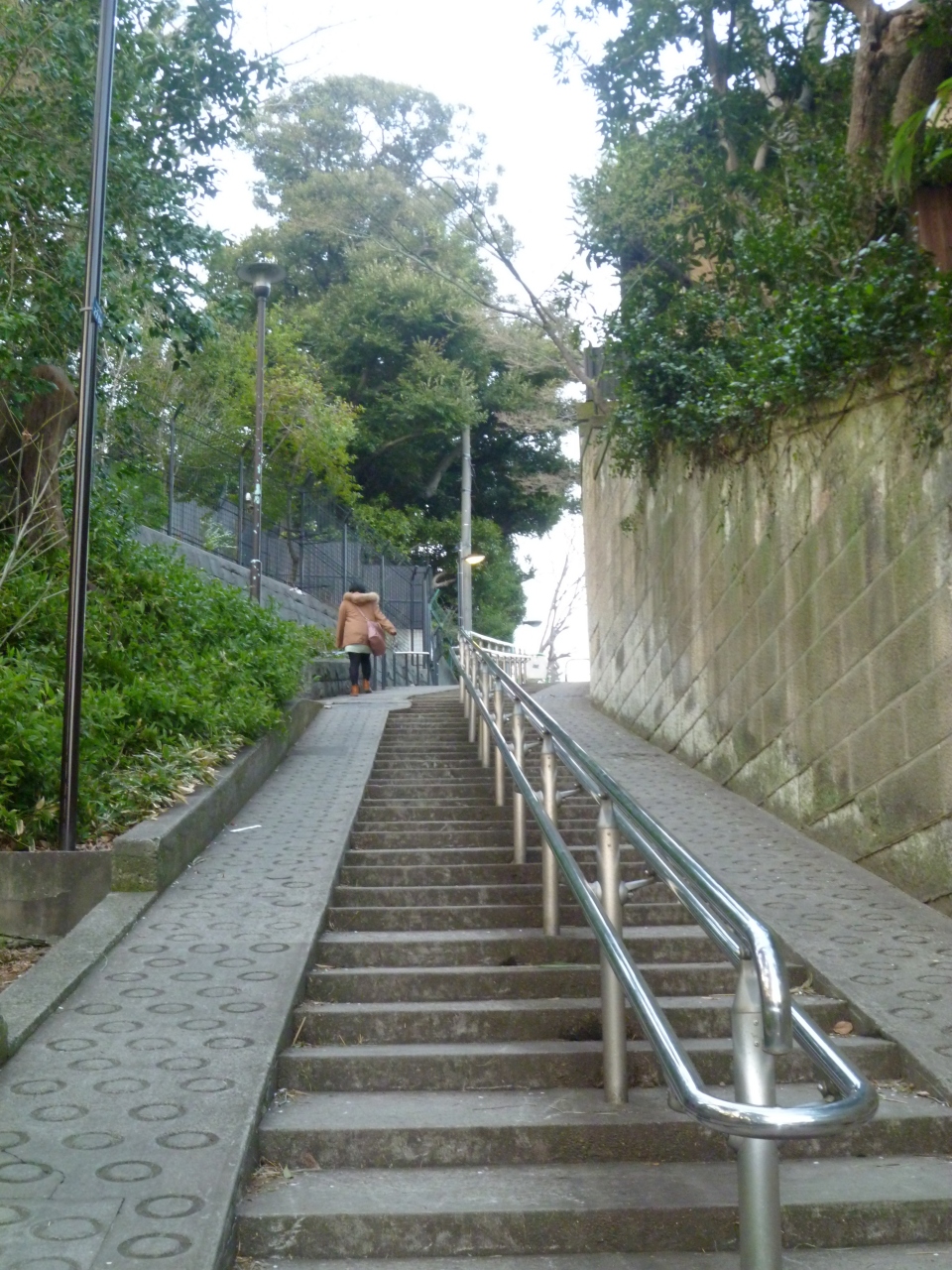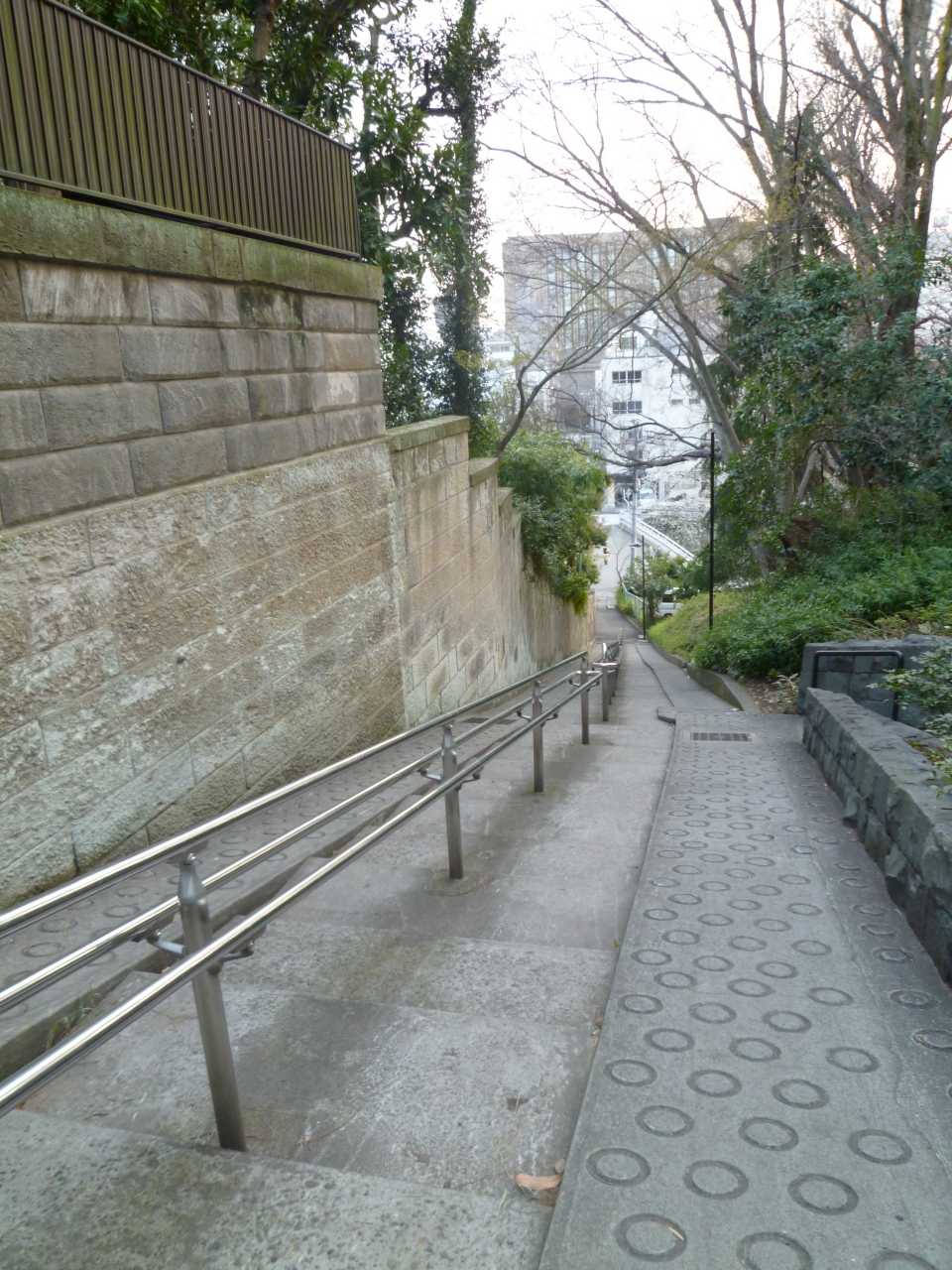 階段をゆっくり上がっている時には、その勾配をあまり実感できませんが、坂の途中から神田川を見下ろすと、かなり急坂であることがわかります。