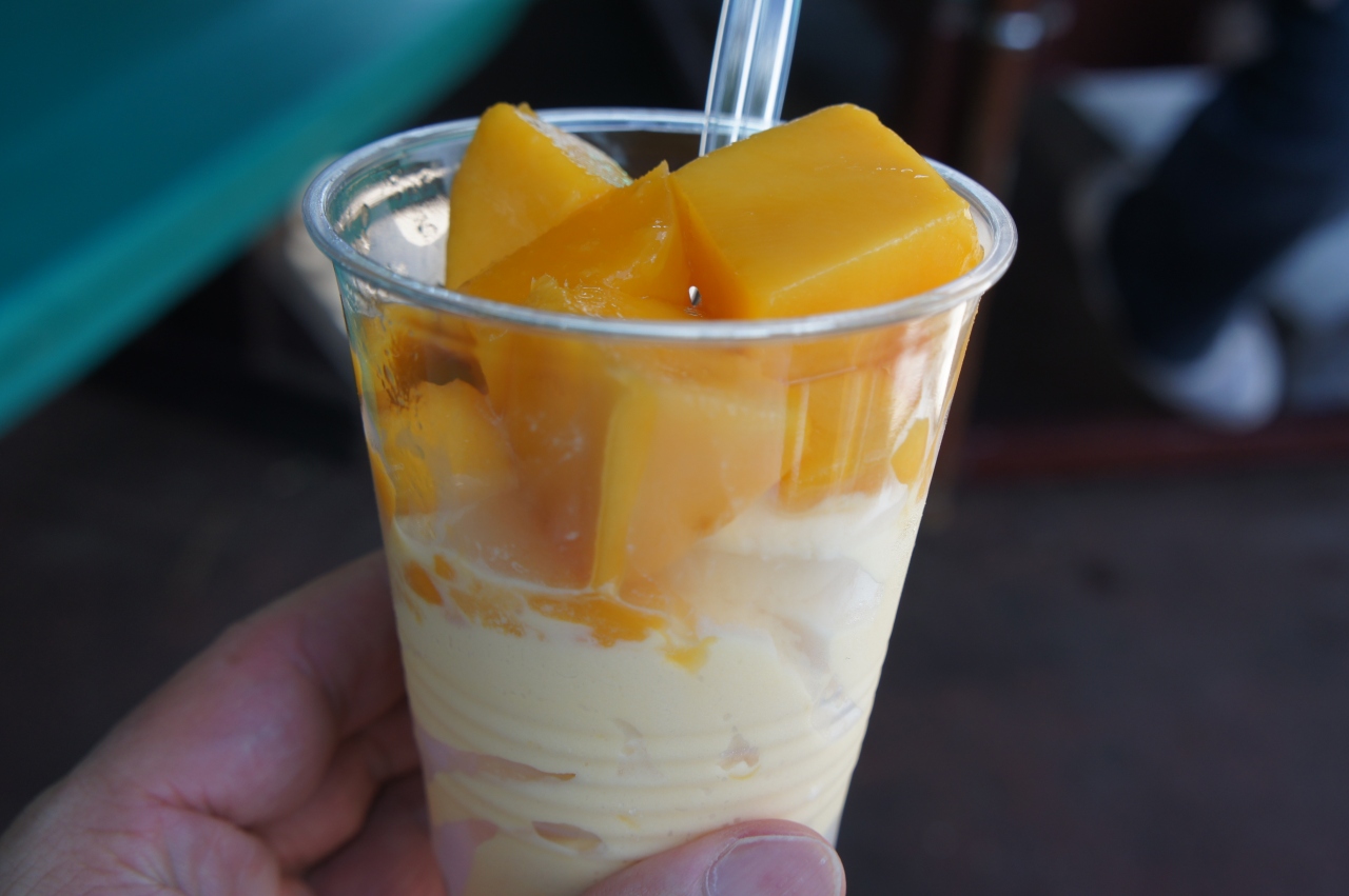海水浴場にしてはお店が少ないです。その中で肉巻きおにぎりのお店があったので買ってみました。初めて食べたのですが美味しかったです。マンゴージュースも味がしっかりしていて美味しかったです。人はあまりいませんでした。