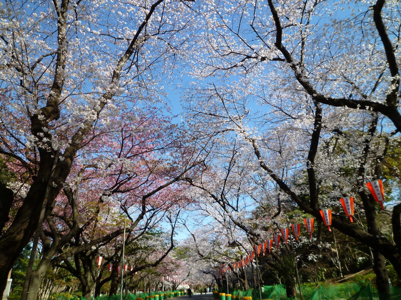 昨日は人で埋め尽くされていたという桜の並木道は、早朝のため静まり返っていました。こんなにのんびり、ゆったりと花見ができたのは初めてです。