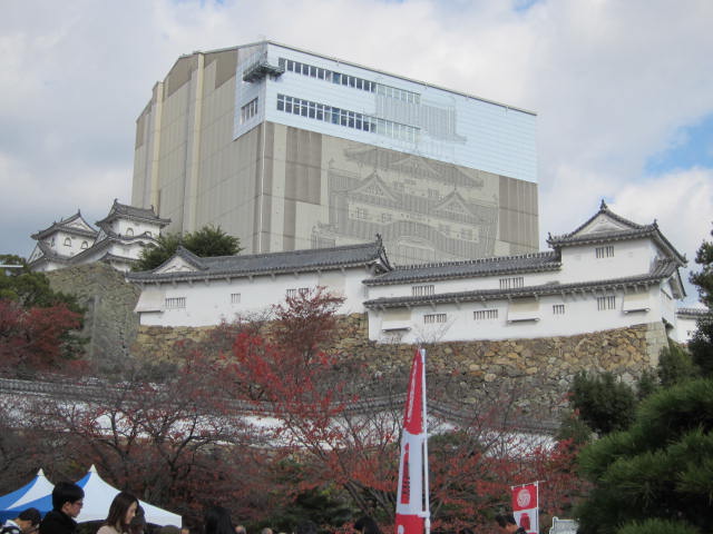 改装中の姫路城に行ってきました。改装の様子を見学したいと思っていましたが、1時間半待ちということで、時間切れで断念。見学を希望する方は、事前予約をお奨めします。城までは姫路駅から徒歩でも行けますが、城の門前まで行けるループバスを利用すると時間短縮できます。