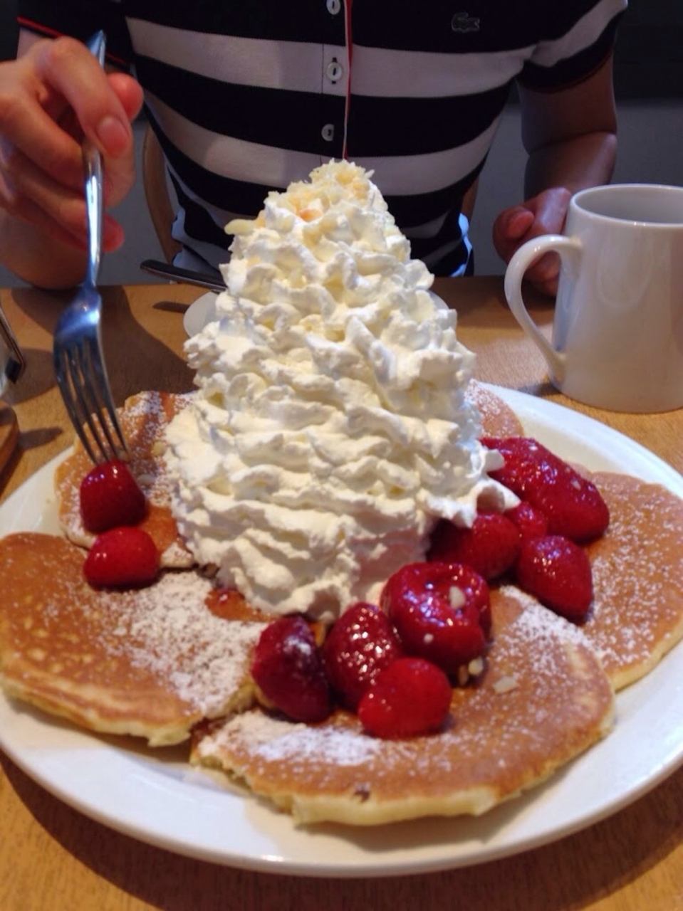 2人でパンケーキひとつ、コーヒを2杯注文。量はこれで十分です。