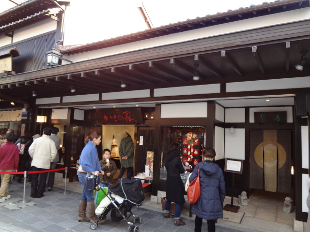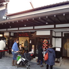 太宰府天満宮の参道には、多くの梅が枝餅を販売するお店がありますが、一番行列が出来ていたのは、ここでした。店頭では、梅が枝餅を実演販売しています。奥には、食事をとるところもあり、松花弁当「とびうめ」などをいただくことができます。