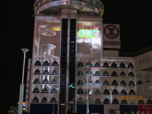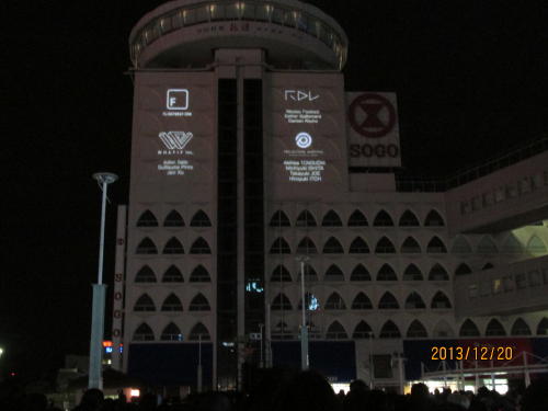 ヒカリデッキかしわ 2013はそごう柏店の壁面に映像を映し出します。