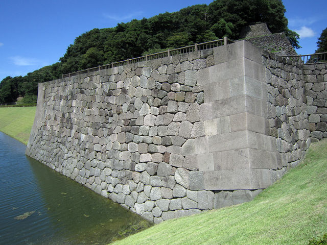 いもり堀に再現された石垣。