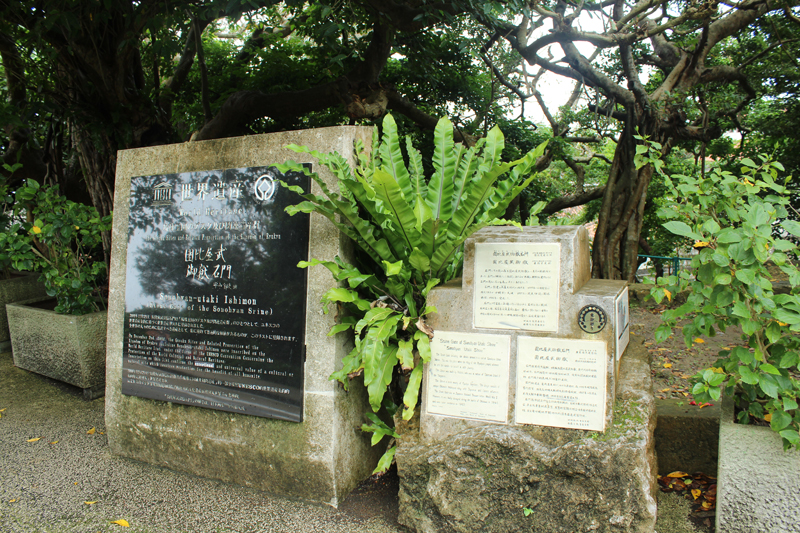 首里城の守礼門と歓会門の間の道路脇にある小さな門です。世界遺産となっていますが、それを示す大きな標識がなければ通り過ぎてしまいそうな地味な門です。園比屋武御嶽の門として、16世紀に造られたものです。御嶽というのは琉球王国の国王が各地を旅する際に、拝礼する施設のことを言うようで、この門はその拝礼をする場所です。