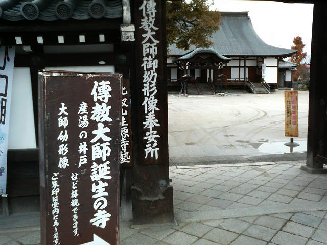 「伝教大師御誕生の寺」と看板が出ていて、境内には年表や誕生時の様子を描いた絵が飾られていたり、産湯の井戸などが残されていて、見どころが結構ありました。