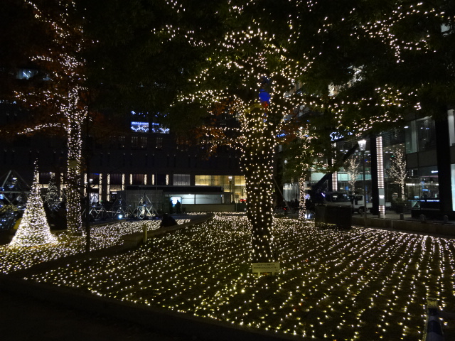 西鉄天神駅前で、広場全面にわたってデコレーションされたイルミネーションを見つけました。看板には「警固公園」とあり、ガイドブックでイルミネーションの名所であることを知りました。