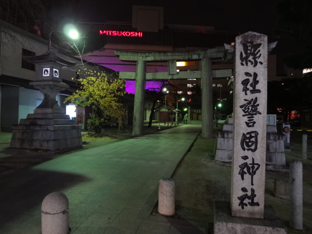 警固の地名は鴻臚館近くに置かれた大宰府の防衛施設警固所にちなんだものだそうです。1601年福岡城築城の際に下警固村に移され、慶長1608年に福岡城主黒田長政によって現在の場所に社殿が造営されたそうです。