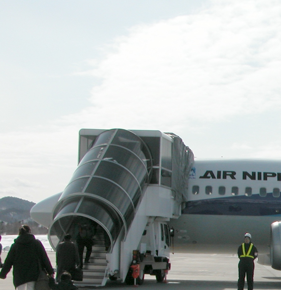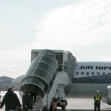空港での飛行機からの乗降は、一旦外へ出て、タラップを使って乗り込む方式で、国内の他の空港では経験したことがなく新鮮でした。