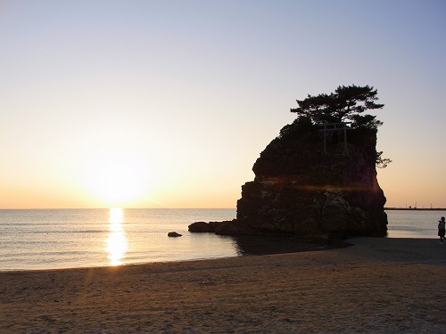 出雲大社にお参りに行ったときに、地元の方に教えていただいた場所:稲佐の浜です。