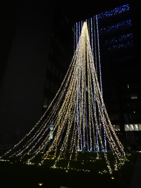 福岡銀行本店の建物は黒川紀章のデザインによるものだそうです。福岡のデザイン100にも選ばれている建物です。地階のホールではクラシックのコンサートも行われています。クリスマスシーズンになると、イルミネーションで綺麗に飾られています。