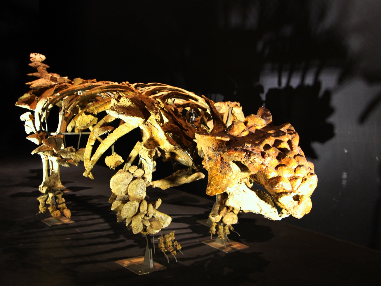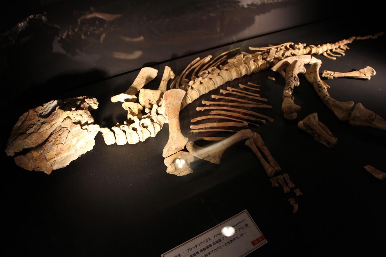 モンゴルのゴビ砂漠で発掘された恐竜の化石標本を展示している。