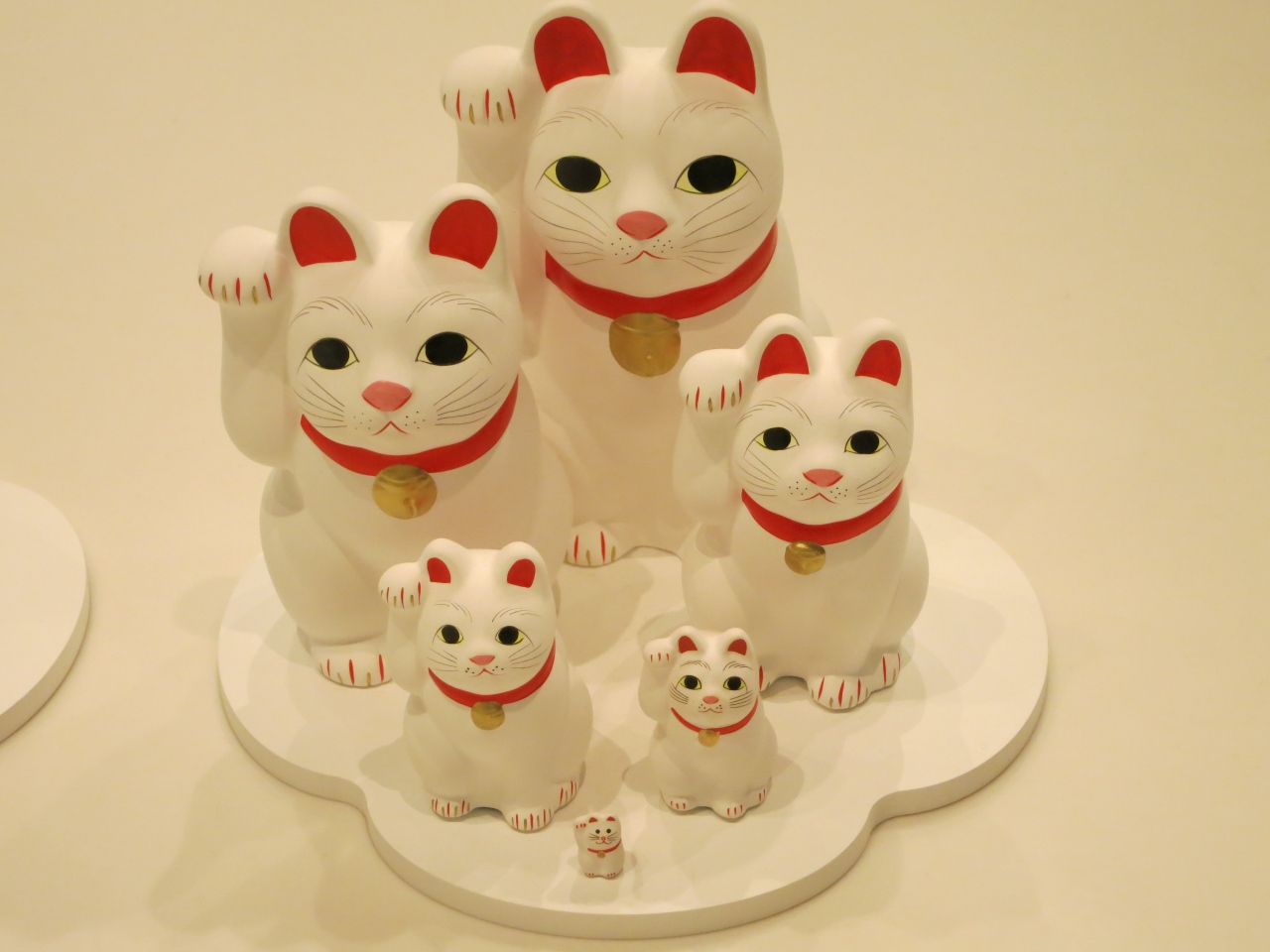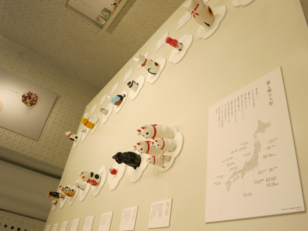六本木 東京ミッドタウンB1Fにある虎屋菓寮は羊羹などの和菓子の販売行う他、店内の左手で企画展が行われています。今回行った際は「甘いねこ展」ど題された企画展が行われていました。日本各地に残る可愛いねこの郷土人形が展示されていて、ねこを題材にした和菓子がありました。