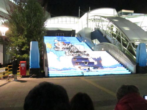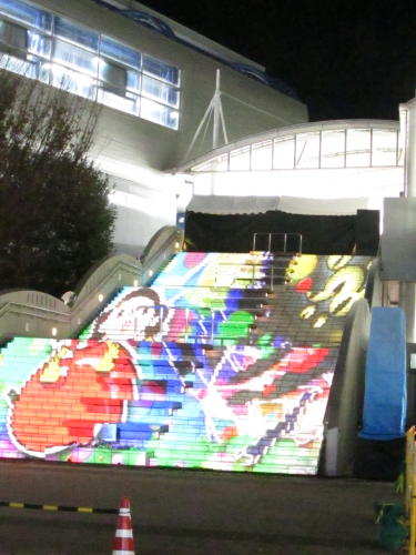 筑波エクスプレス・おおたかの森駅の階段を利用して開催されたイベント「おおたかの森3Dプロジェクションマッピングショー 」を見て来ました。2013年12月21日(土)・22日(日)の2日間のみの開催で午後6時から9時までで、その間約10分間隔で上映されますので待たされる事なく見る事が出来ました。テーマは「聖夜の不思議なボール」で階段をボールが飛び跳ねる映像でした。階段と言う場所と映像がとても上手くマチングしていて楽しい物でした。階段の影像を見る場所は真中で見ないとズレが生じますので注意しましょう。柏と比較して流山の方が予約の必要も無く、待たされる事もなく、影像もカラフルでテーマもあり楽しい物でした。