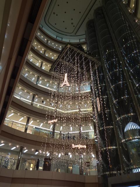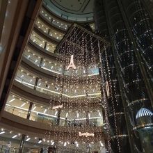 外観はライトアップが、館内には、中央の吹き抜け部分に電飾が飾られており、カップルが写真を撮ったりしていました。