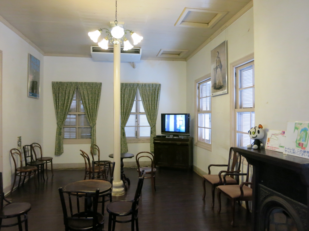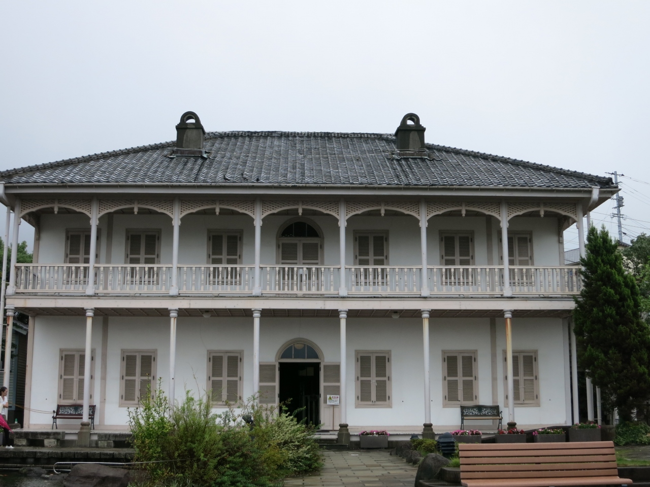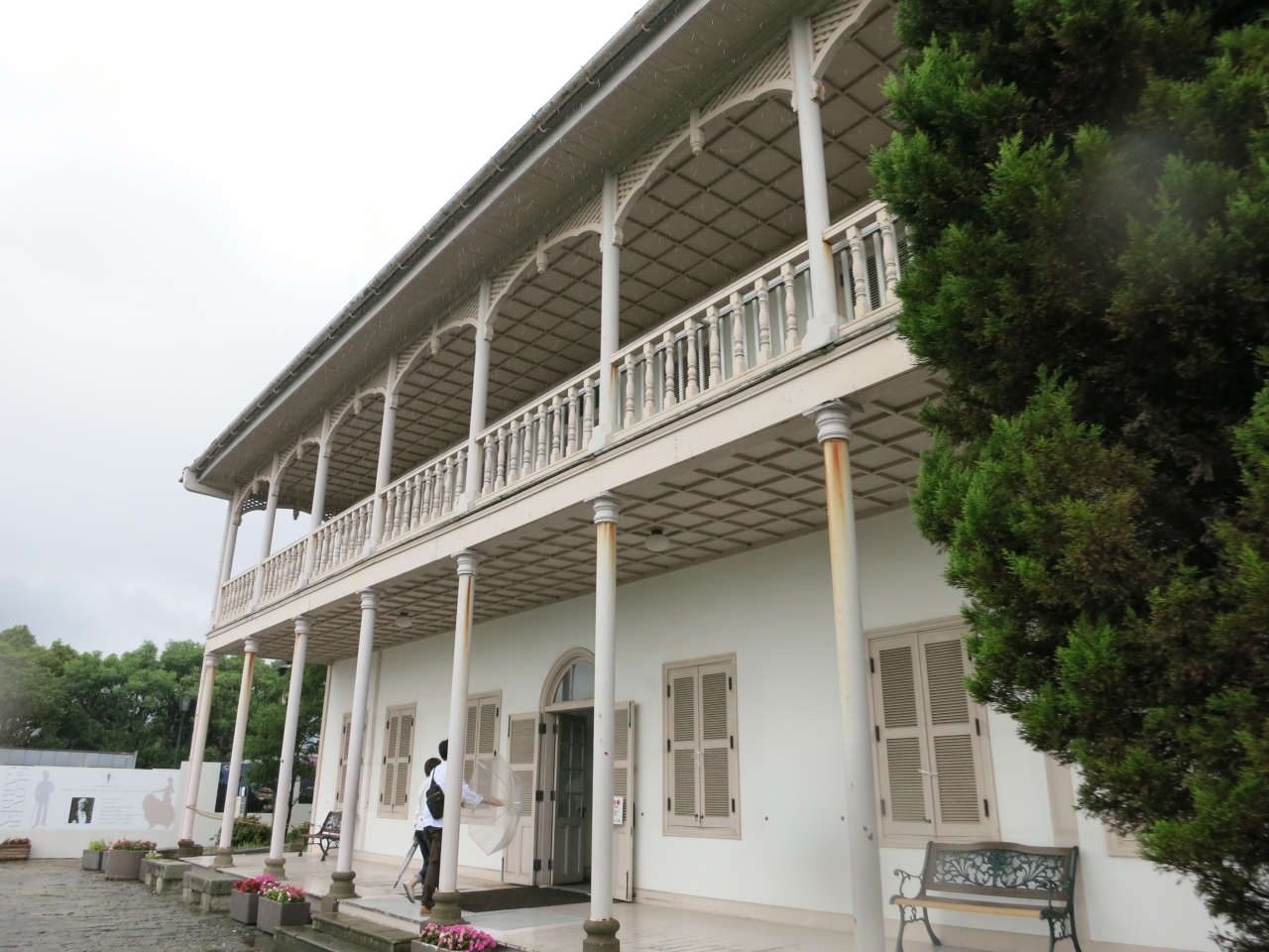 グラバー園の一番高い場所にあり、長崎港などの眺めがよいです。出口付近にもレストハウスがありますが、ここでよい景色を眺めながらの小休止もよいと思います。建物の中にはテーブルと椅子があり、グラバー園を紹介するビデオが上映されていました。飲み物の自販機があり、おまけにエアコンもかかっているなど、快適な環境でした。グラバー園を見学中の修学旅行生のたまり場にもなっていました。