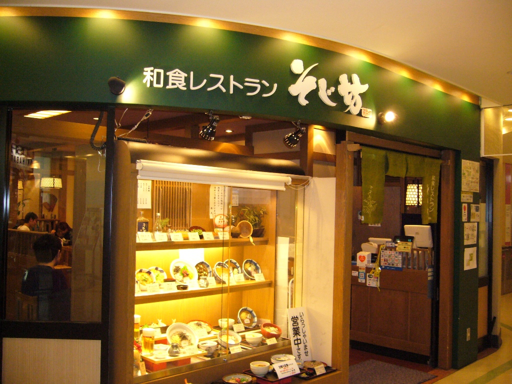 第1ターミナル中央ビル4階にある和風レストランです。そじ坊というとざるそばに新鮮なわさびの 地下茎を自分ですりおろしていただくのが絶品で、付け合せにみたらし団子が少量ですがついています。セットメニューや一品料理もあります。少量ずつ食べ歩きするのも楽しいですね。