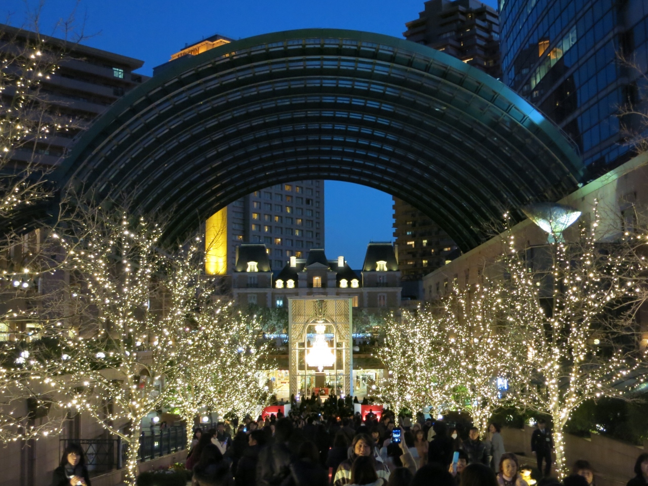 また時計広場にはクリスマスツリーがあり、ここから下る坂道の先にバカラシャンデリアがありイルミネーションの眺めが綺麗です。