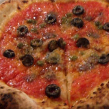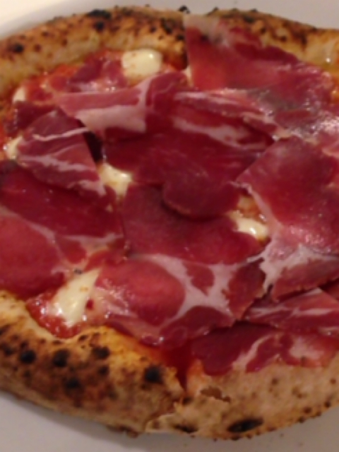 女友達と2人でオーダーしたピッツァは2枚。シンプルにトマトソースとアンチョビやオリーブがのったものと、マルゲリータにプロシュートを載せたものです。