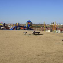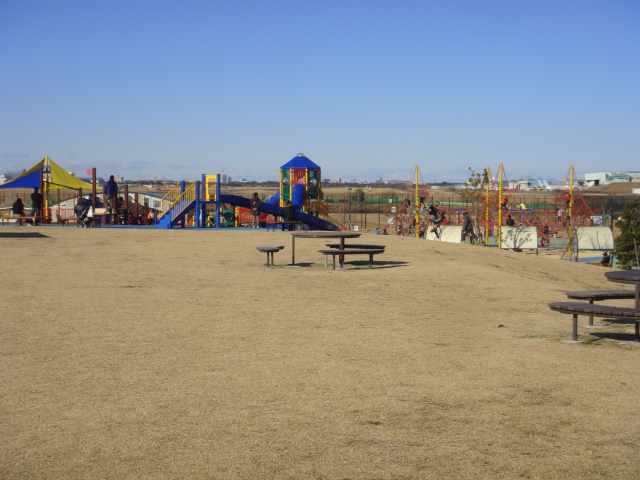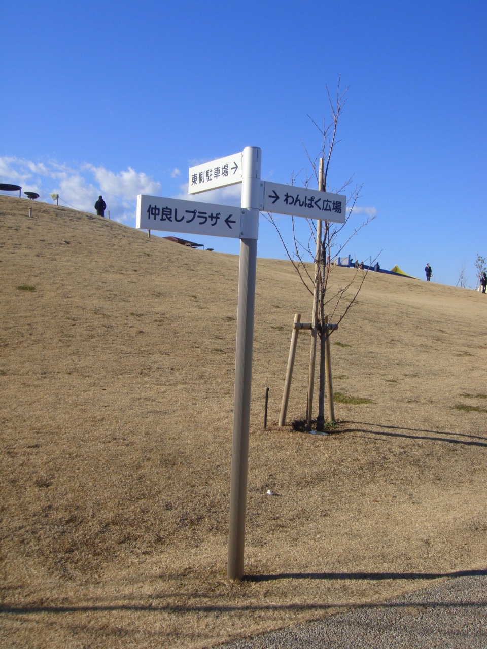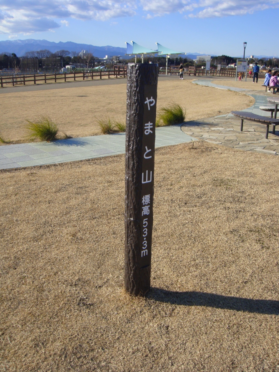 平成26年度完成を目指している厚木基地の南側に位置する公園です。現在は、「わんぱく広場・ピクニック広場」、「センター施設(ゆとりの森 仲良しプラザ)」、「芝生グラウンド」、「ふわふわドーム」などがオープンしています。飛行場の近くのため広々としており、高い建築物がないため、丹沢山系や富士山が良く見えます。小高い芝生の山頂には「やまと山53.3m」と書いてありました。