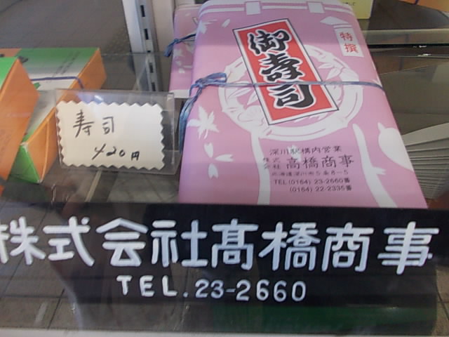 深川の代表的な銘菓であるウロコダンゴは、三浦綾子の小説「銃口」でも登場することで、地元民のみならず全国的にもファンの多い商品ですが、地元では実は”高橋商事”というごく平凡な事業体として、深川駅構内で駅弁販売や立ち食いそば屋さんを営業しています。札幌=旭川を移動される方は多いかと思いますが、深川は殆どの場合素通りされてしまいます。是非、一風変わった風情を味わいに、途中下車してみて下さい。