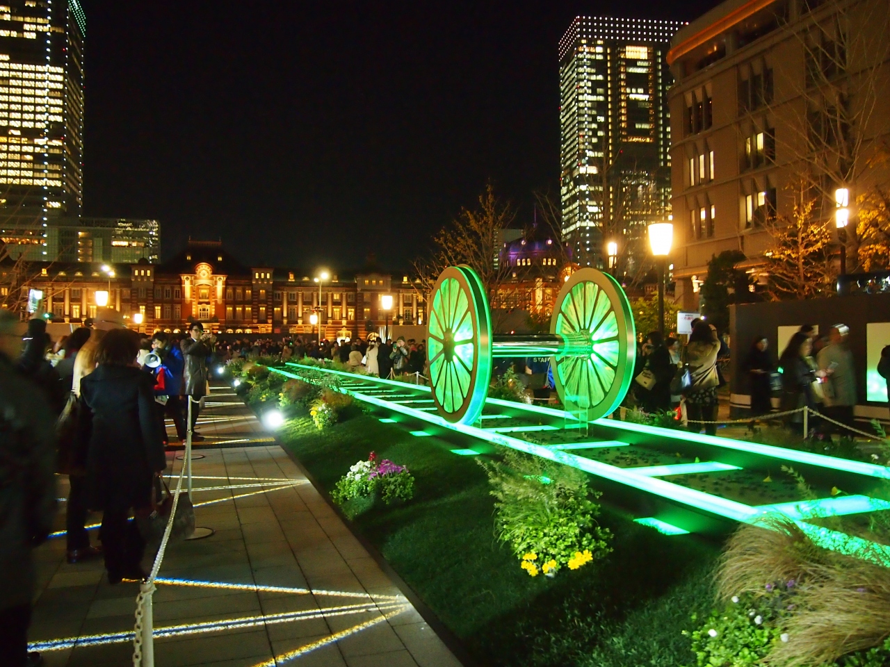 東京ミチテラス2013は東京駅舎と皇居外苑を結ぶ行幸通りに光のレールウェイ。