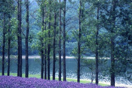 木立の間から眺める湖と、湖畔にラベンダー・ポピーの花畑があり、撮影スポットとしても非常に良い。何よりもフラノほど人が多くなく落ち着いているのがよい。