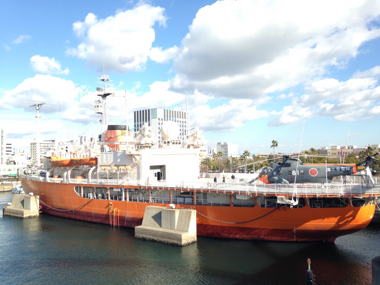 甲板にはヘリコプターも搭載されています。
