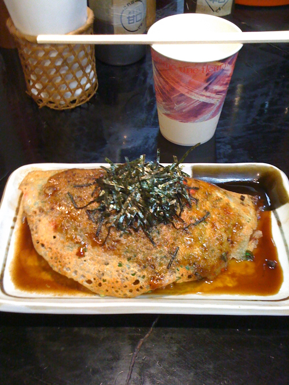 店頭で焼いているお好み焼きのようなものがとっても美味しそうで、しかも店の雰囲気もなんか面白そう!と思い即決入店しました。