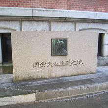 岡倉天心生誕の地は、みなとみらい大通り沿い横浜市開港記念会館の横にあります。碑には岡倉天心さんの横顔のレリーフが入っていました。