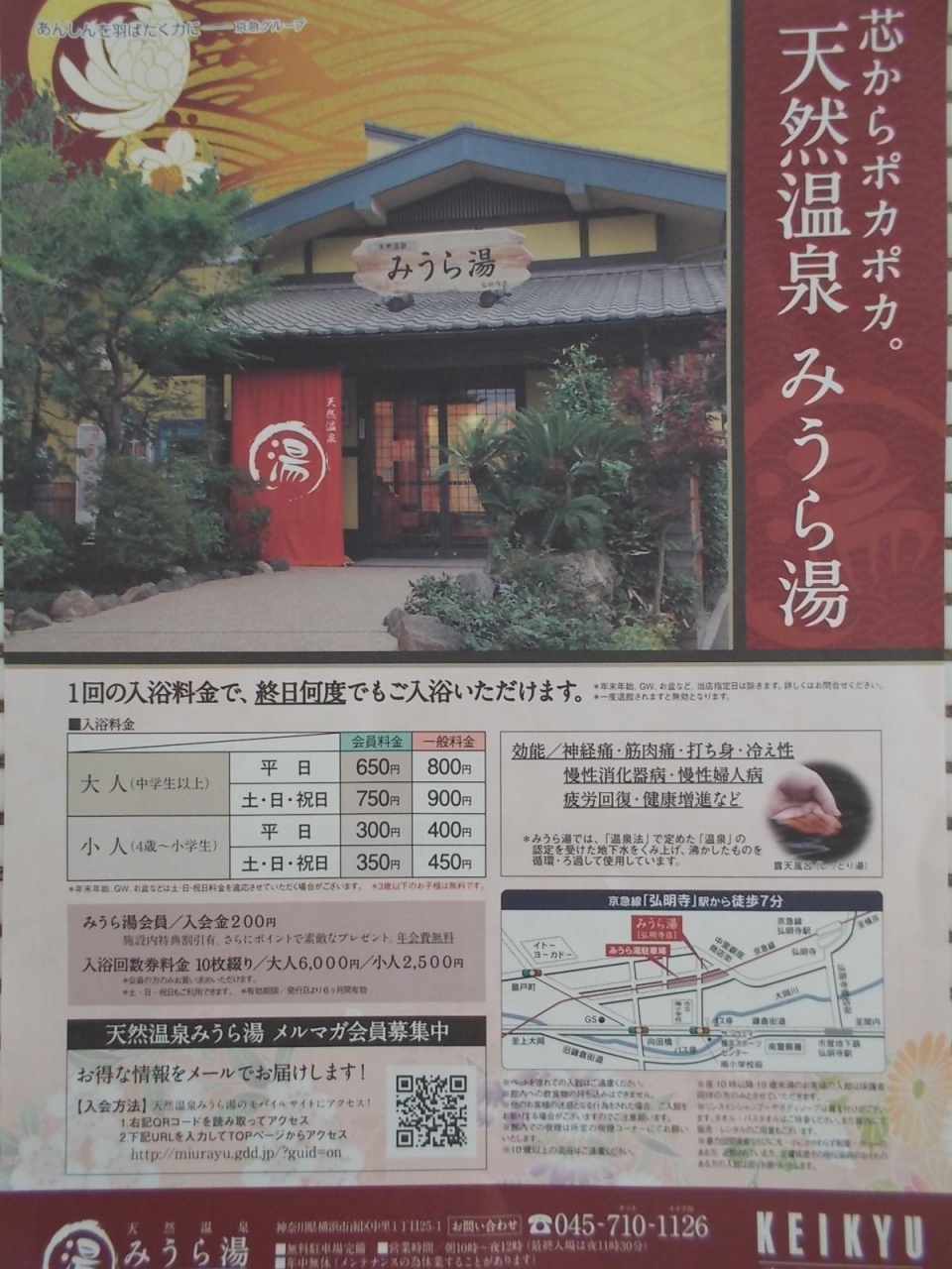 京急線横浜駅から往復乗車券と入場料がセットの「弘明寺みうら湯きっぷ」910円を使うとお得です。