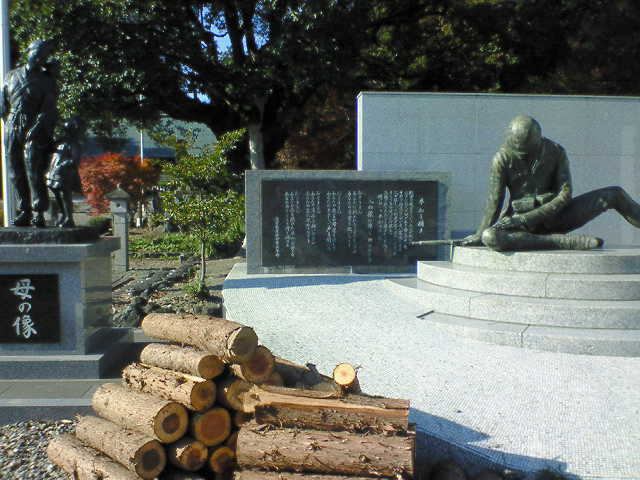 彦根城のそばにある神社で、護国神社でよく見かける軍馬・軍犬等の慰霊碑の他、「父の像」「母の像」など、戦場に駆り出され傷つく兵士と残された家族の痛々しい姿の像など数多くの慰霊碑等があり、戦争の悲しみを再度実感させられます。