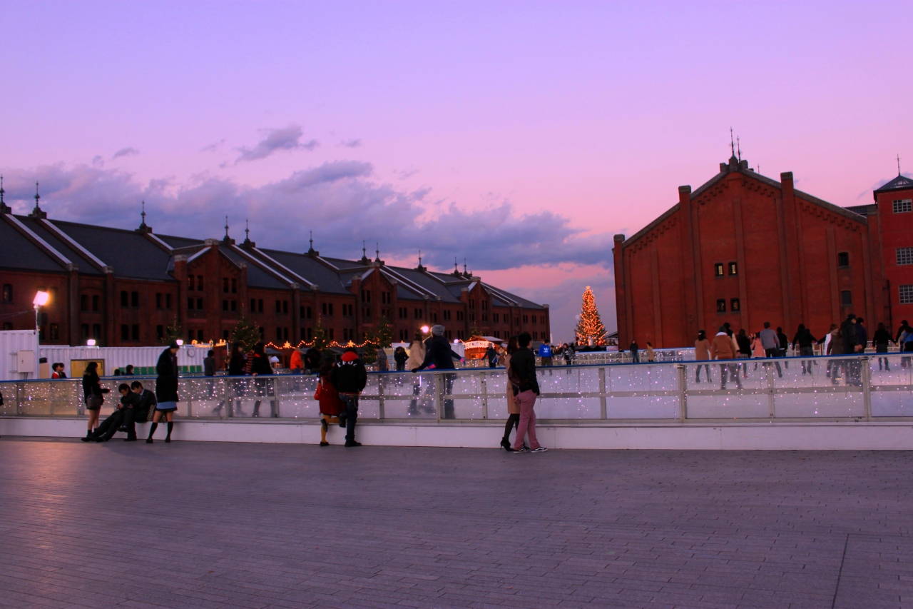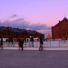 赤レンガ倉庫の間の広場はスケートリンクになっていて