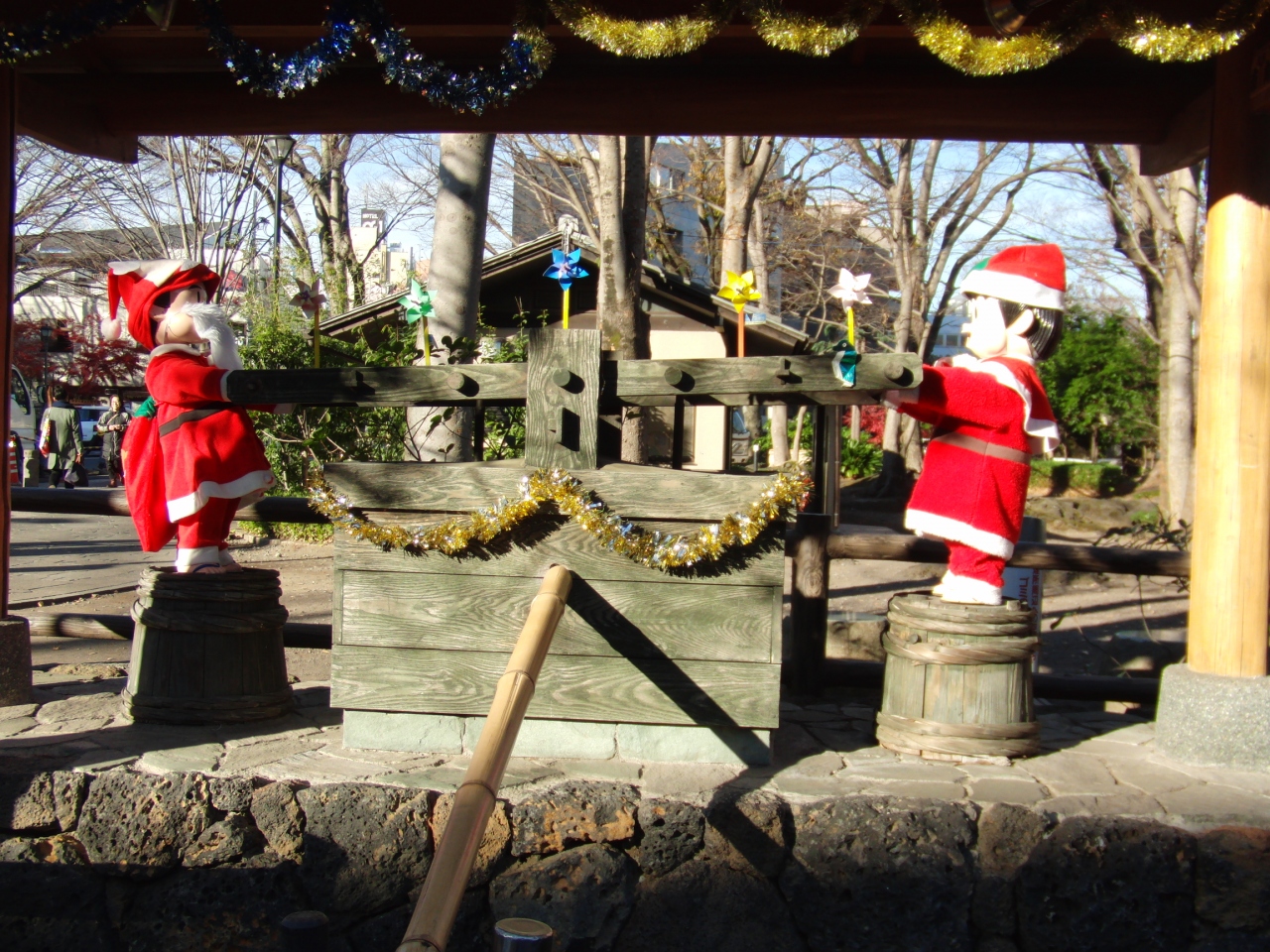 この公園の水飲み場には、可愛い仕掛け人形がいます。のどが渇いていなくても、きっと飲んでしまいますよ。