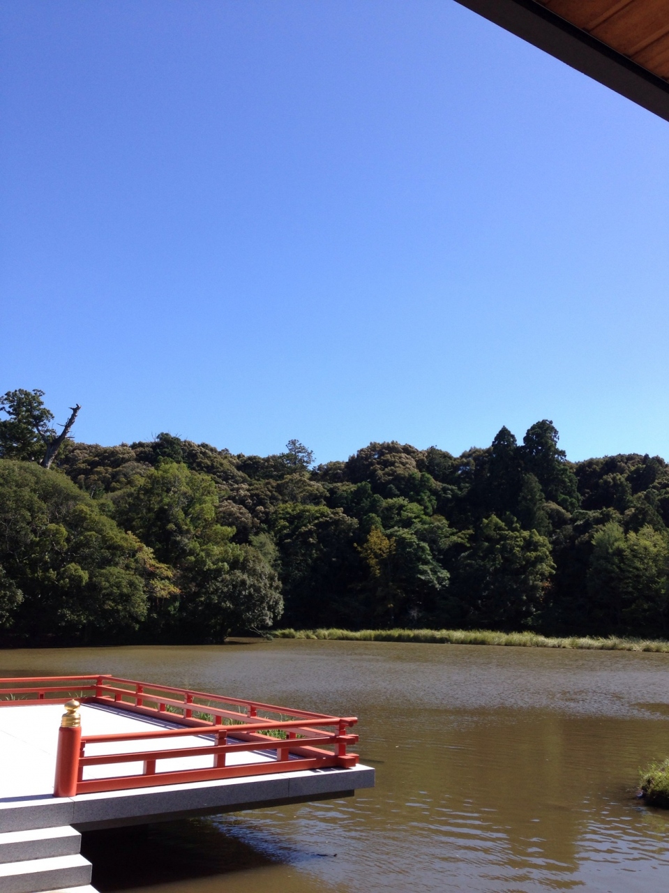 伊勢神宮の外宮の鳥居をくぐると左側に大きな池があり、その横に記念館があります。中に入ると撮影禁止なので、撮影するのであれば、池のところからになります。ちょうど、ベンチがあり、無料のお茶と水が飲めるようになっています。記念館は新しく、遷宮についての歴史などがわかります。
