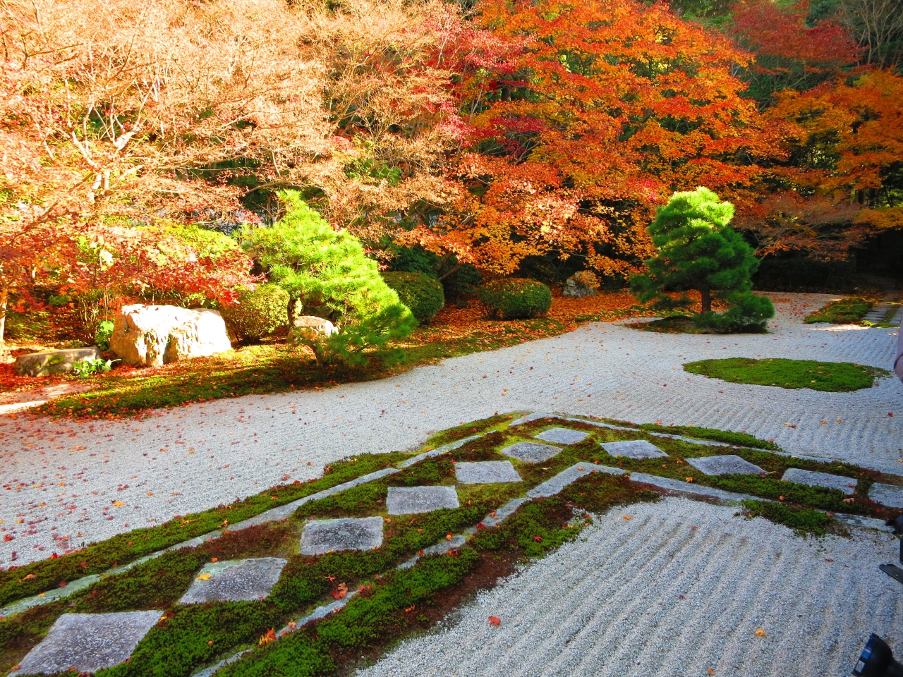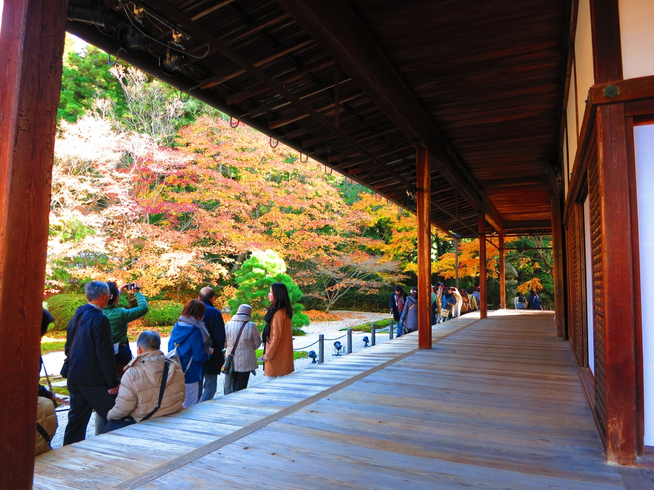 2013年 JR東海「そうだ 京都、行こう。」秋キャンペーンで扱われたお寺が、南禅寺の塔頭の天授庵です。丁度南禅寺三門の右手にあり、天授庵の枯山水庭園越しに三門が見えます。CMで扱われたからでしょうか、旗を持ったツアー客が多くおられ、参拝順路が渋滞するほどの盛況ぶりでした。