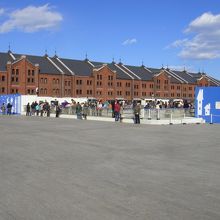横浜観光の定番スポットで、冬期は外の広場がスケートリンクになっています。テニスコート程度の小さなリンクですが、大勢の人でにぎわっていました。入場料は大人500円、貸し靴500円です。倉庫内のショップは1号館、2号館共に相変わらず混んでいます。桜木町駅から徒歩20分程度ですが、100円バス(あかいくつ号)を利用すると便利です。
